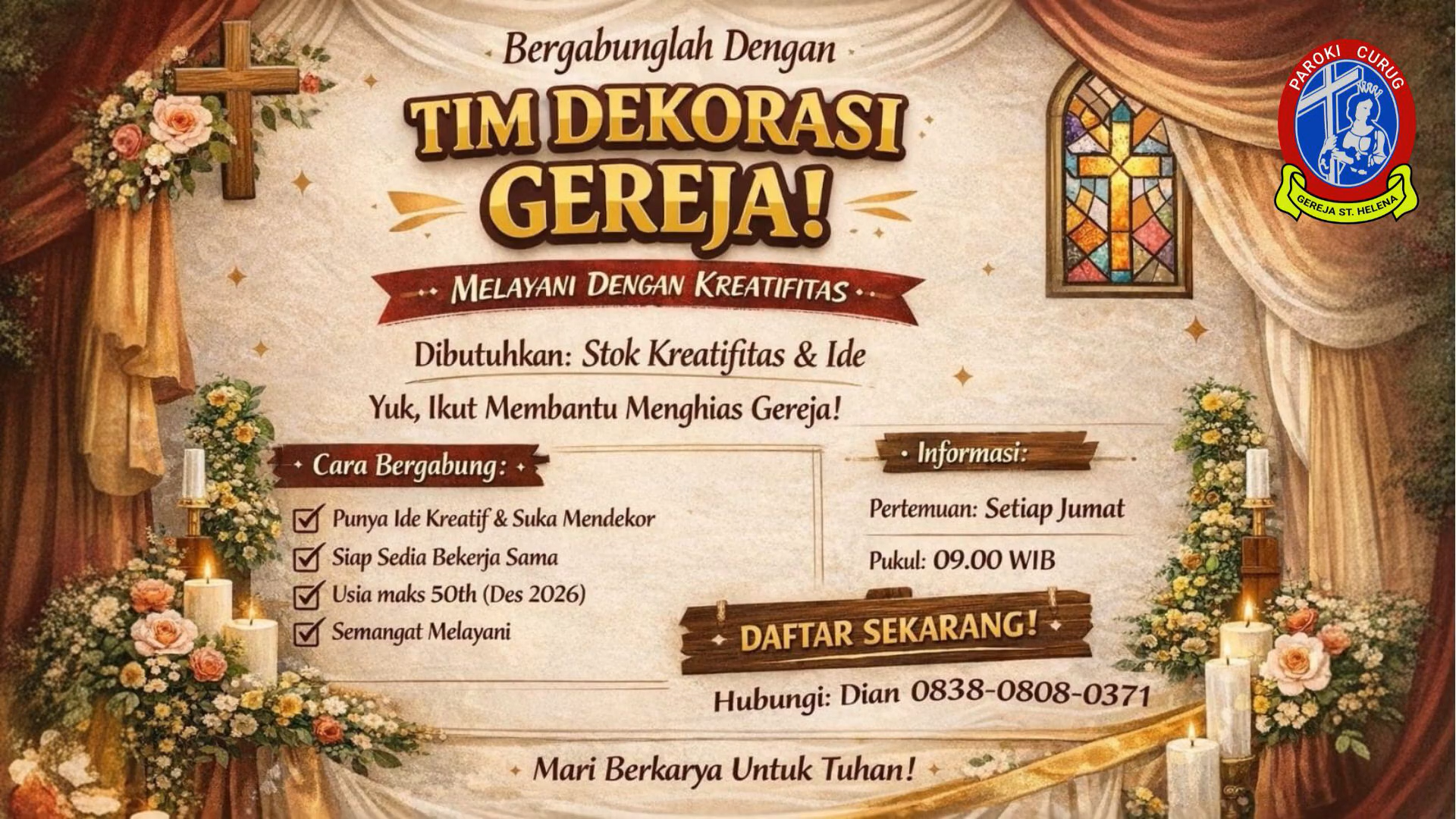 Rangkuman informasi dan kegiatan mingguan, pengumuman serta agenda terbaru Paroki Curug, Gereja St. Helena.