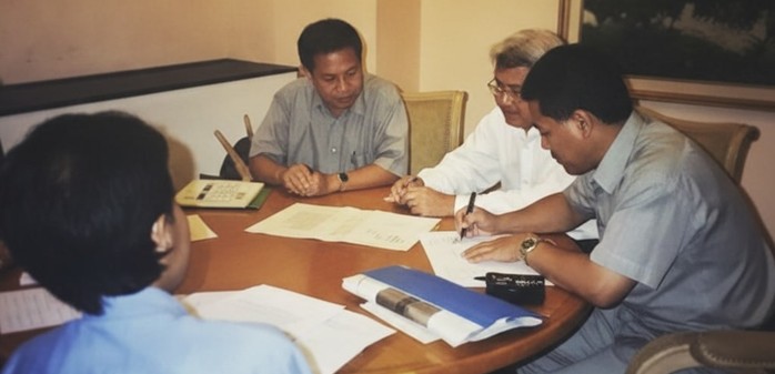 Dalam penentuan nama pelindung, rapat diadakan pada Februari 1996 di JI. Gunung Aspen, sebagai sekretariat sementara. Pertemuan dewan stasi itu secara khusus membahas nama pelindung yang akan digunakan. Di situ A.M. Putut Prabantoro hadir dalam kapasitasnya sebagai Ketua Sie Humas dan Dokumentasi. Selain dirinya, hadir pula anggota dewan lain seperti Ade Hidayat, Sunaryo, Sugito, Joseph Paat, Eugenius Laluur, Elizabeth Wong, Binsar Nainggolan, Bong Felix, Suwanto, Wibowo, Bambang Setiawan, dan sebagainya.